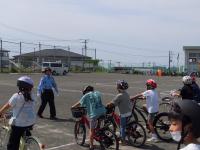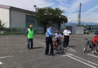 実技では、自転車に乗って走行したり、停止したりしながらの安全確認の仕方を教えていただき、