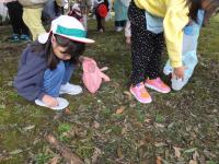 生活科の学習で秋見つけに行きました。公園では夢中になってどんぐりや色づいた葉っぱなどを探し、友達と見せ合っていました。見つけた秋の宝物でどんな遊びができそうか、どんな物が作れそうか、考えていきます。