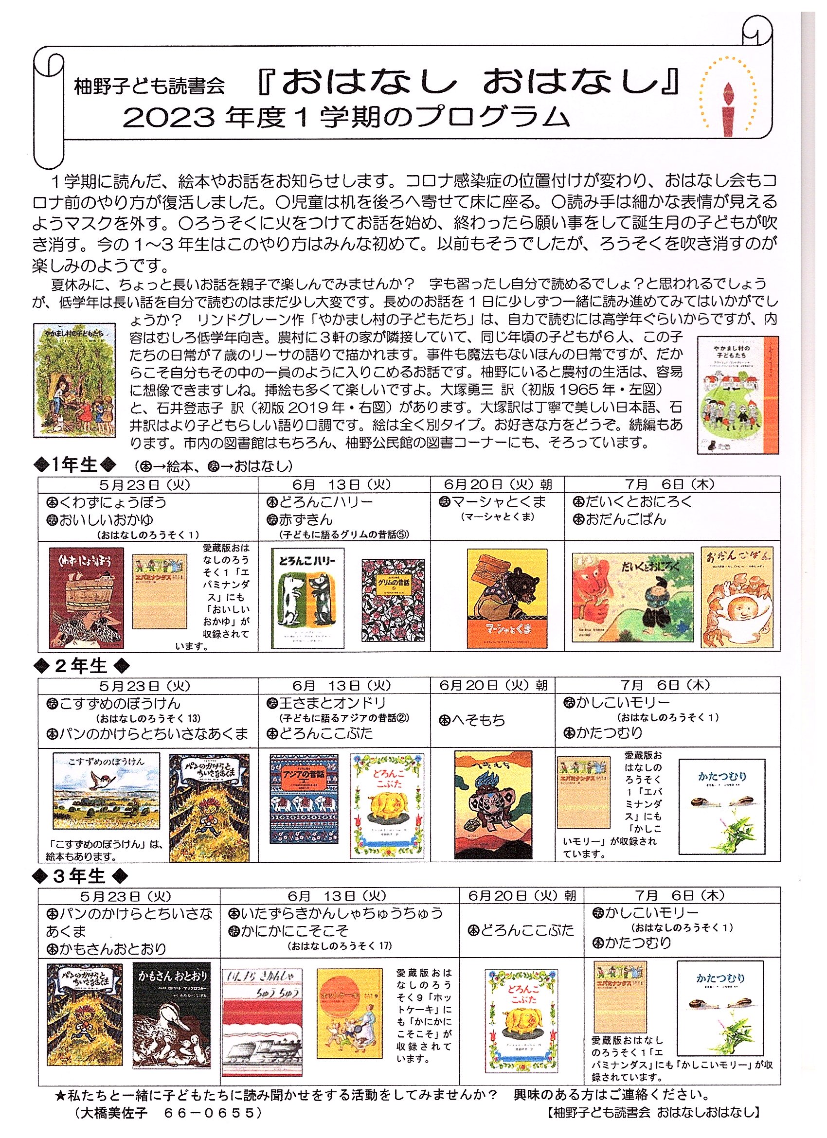 「2023年度のおはなしおはなしのプログラムを「学校からのお便り」にアップしました。